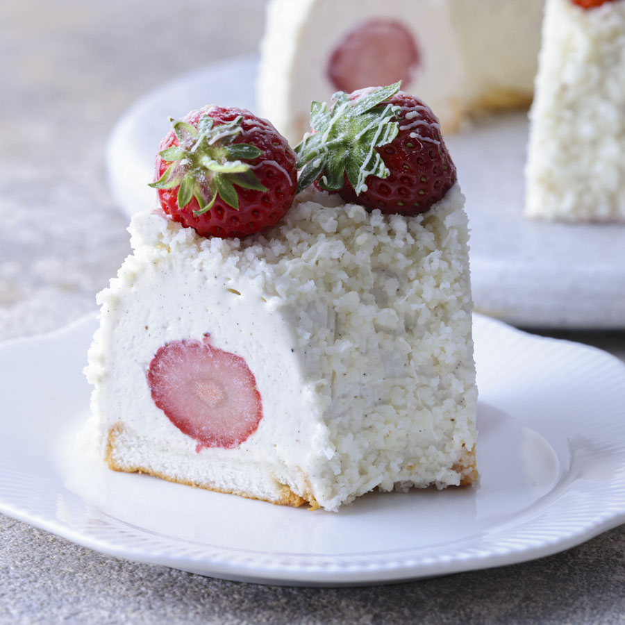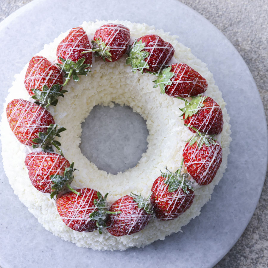 コンテンポラリーなエンゼルフードケーキ(天使のリング状)とトレンドのグルメプレミアムショートケーキを掛け合わせたコンセプト。