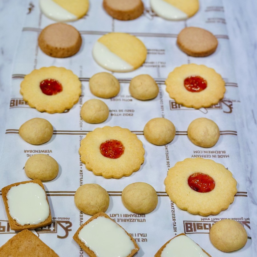 ディアマンクッキーとジャムクッキーを入れて5種類のクッキーの完成です。