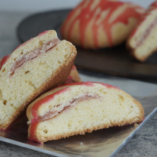 フワッとした焼き上がりで仕上げに桜色のアイシングをしてポップに仕上げています。