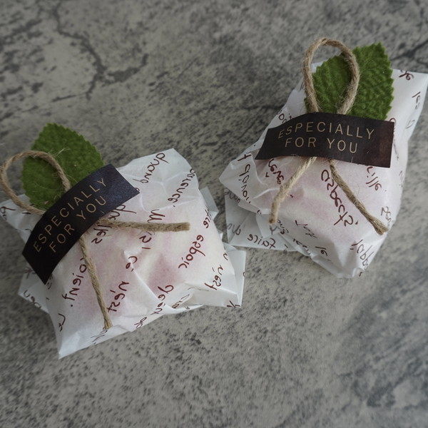 アイシングがしっかり乾いたら、ラミシートに1個ずつ包みテープで留める。
