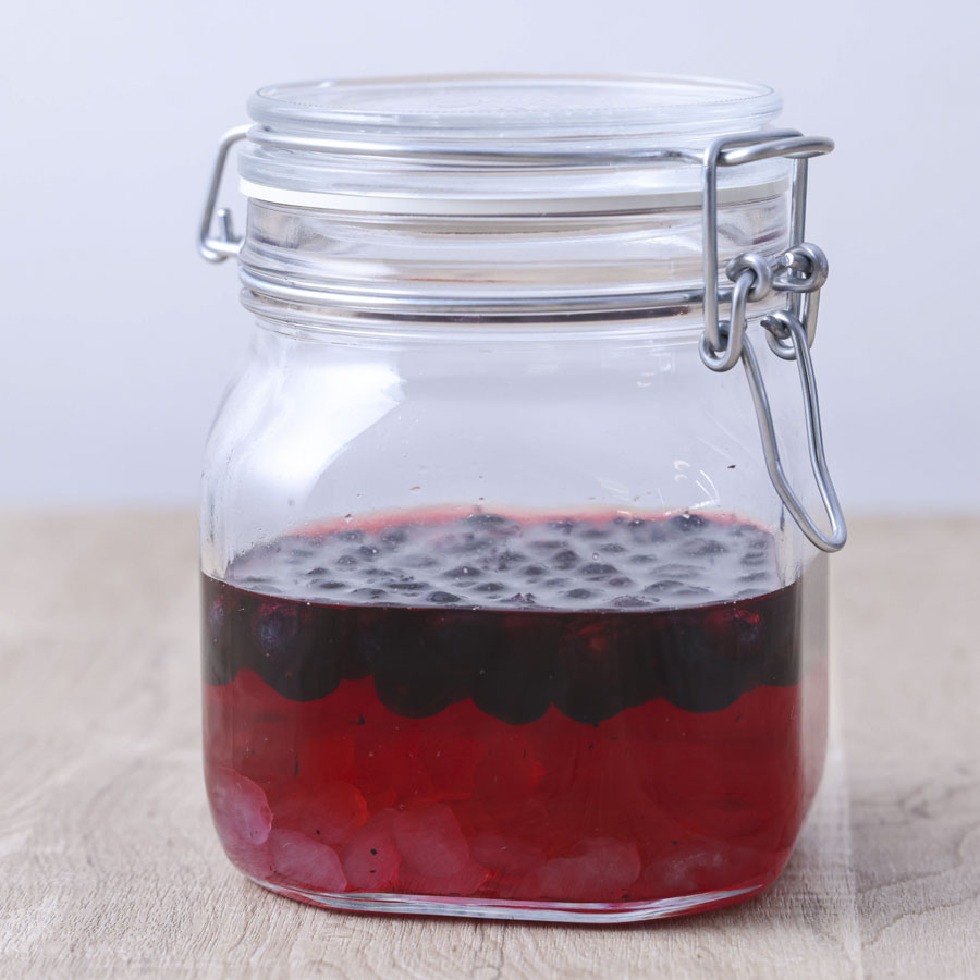 保存瓶に冷凍ブルーベリーを入れる。