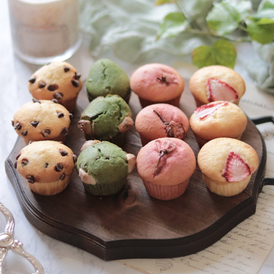 ●苺:カットした苺を生地に混ぜる。型入れ後にスライスした苺を飾る。