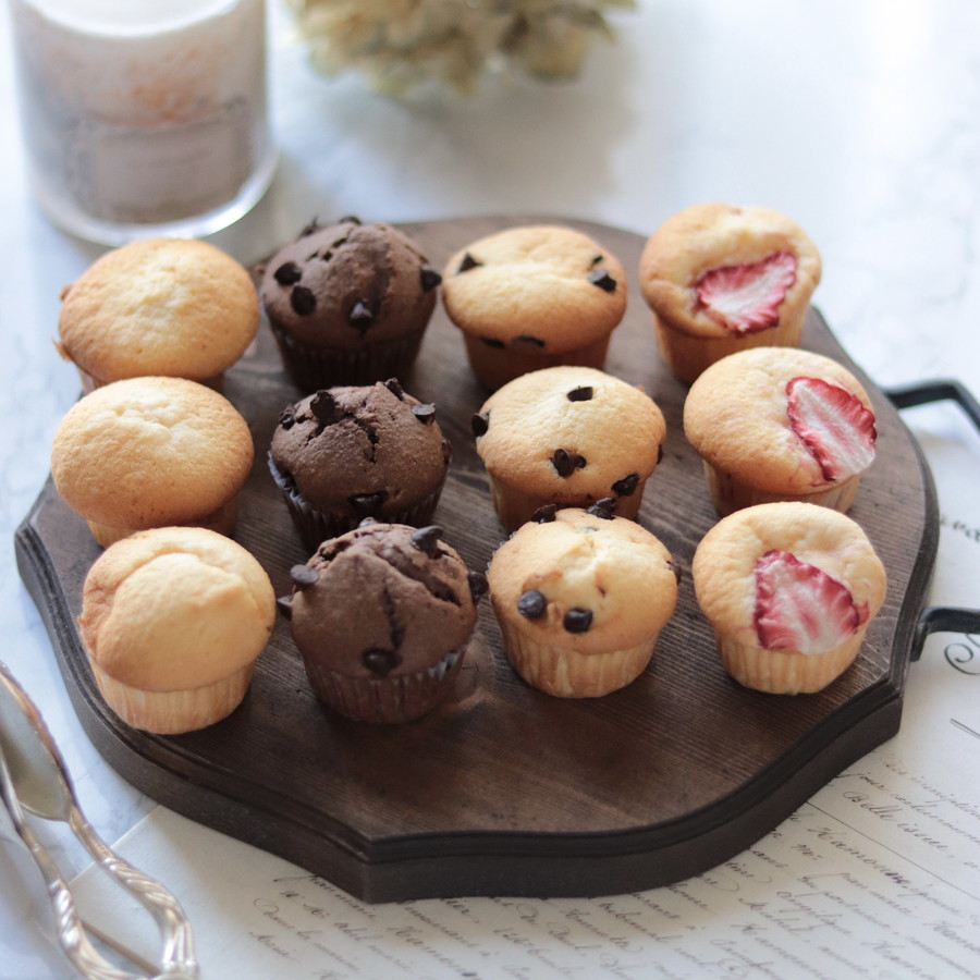 170度に予熱したオーブンで15分程焼く。竹串でさしてみて、どろっとした生地がついてこなければ焼き上がり。