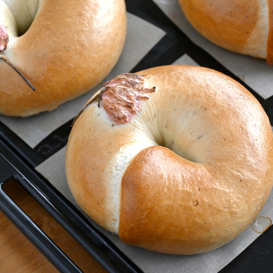春に食べたい♪桜の花と小倉あんのベーグルレシピです。