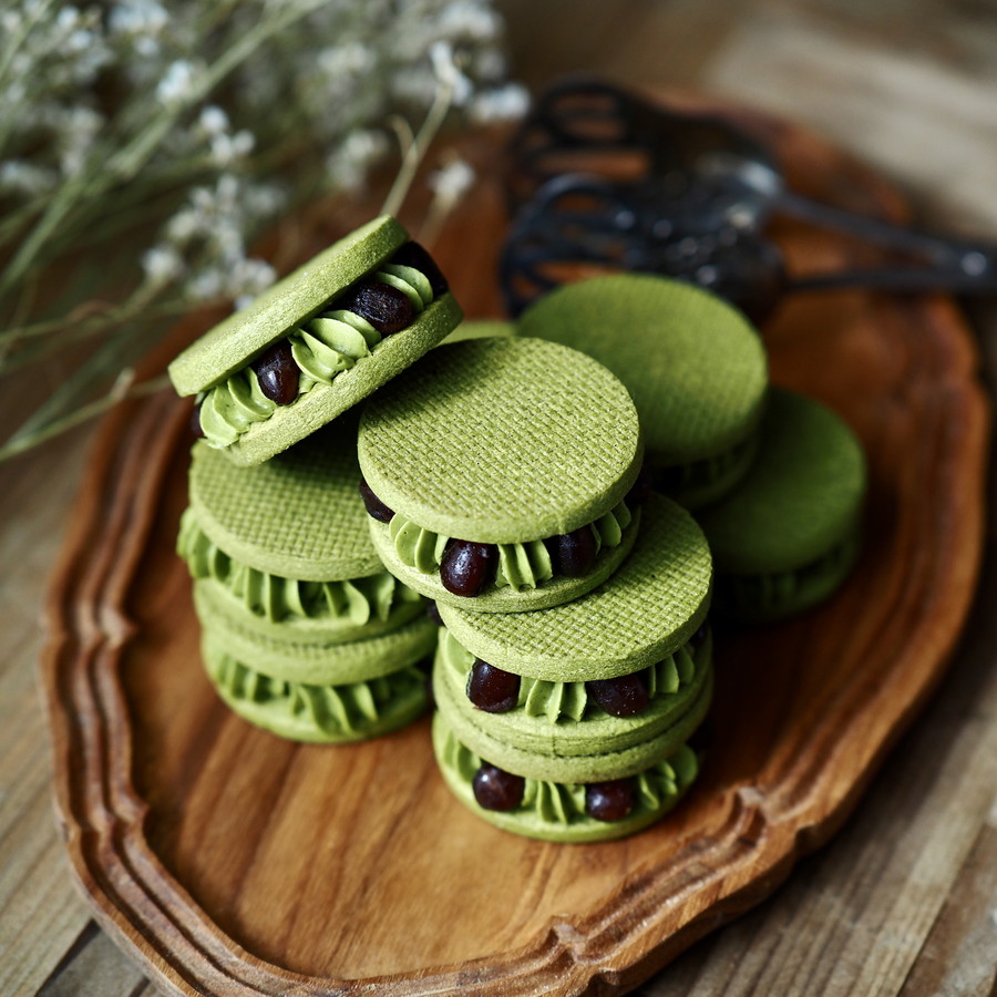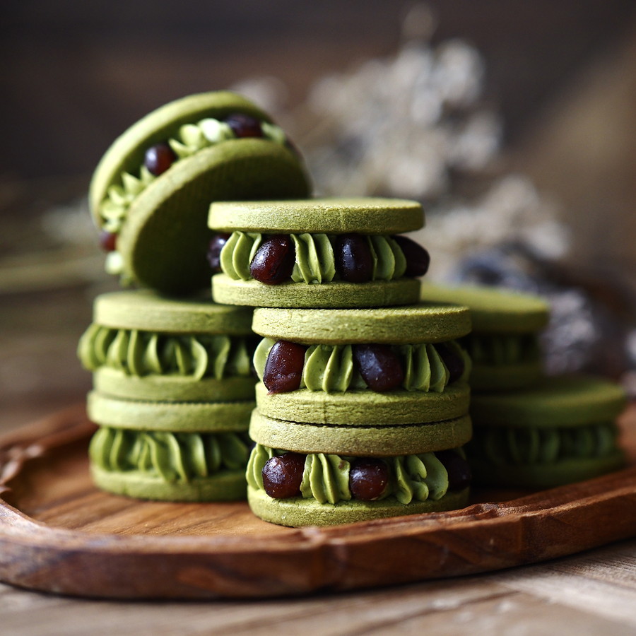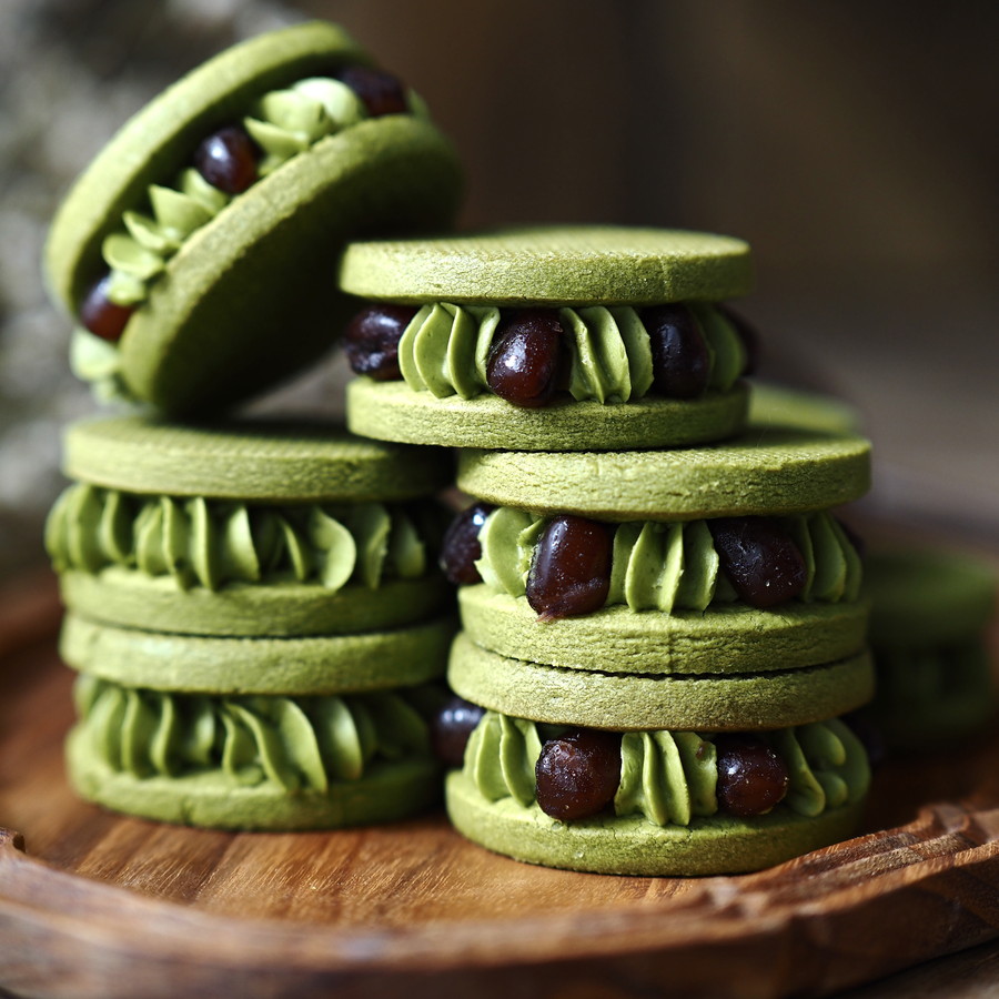 抹茶のクッキーに抹茶のバタークリームをサンドした抹茶尽くしのバターサンドです。