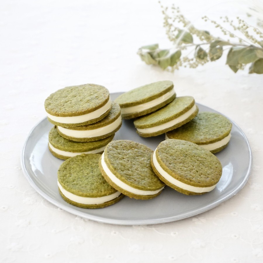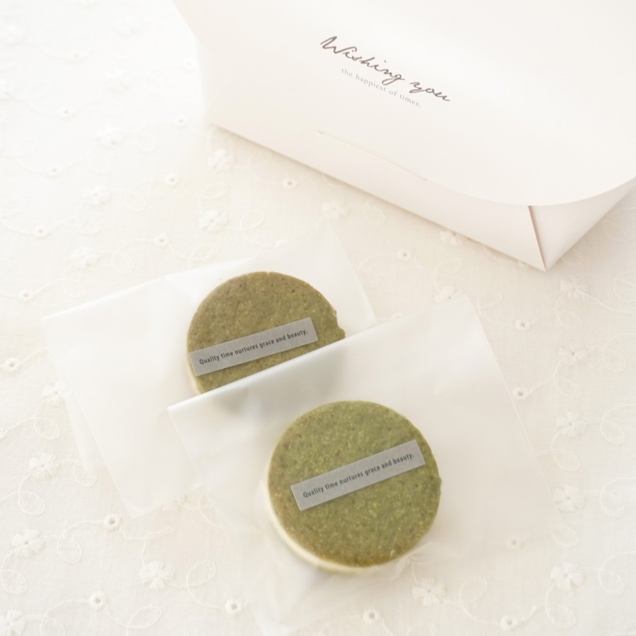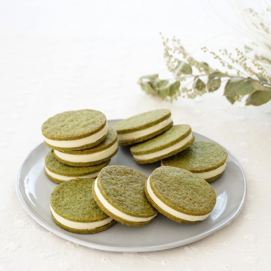 ホワイトチョコを米粉で作る甘さ控えめのサクサク米粉クッキーで挟みました。