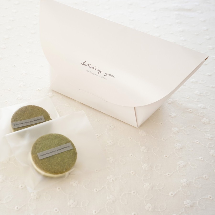 ギフトボックスにグラシンを敷き、クッキーを入れてふたを閉じて完成。