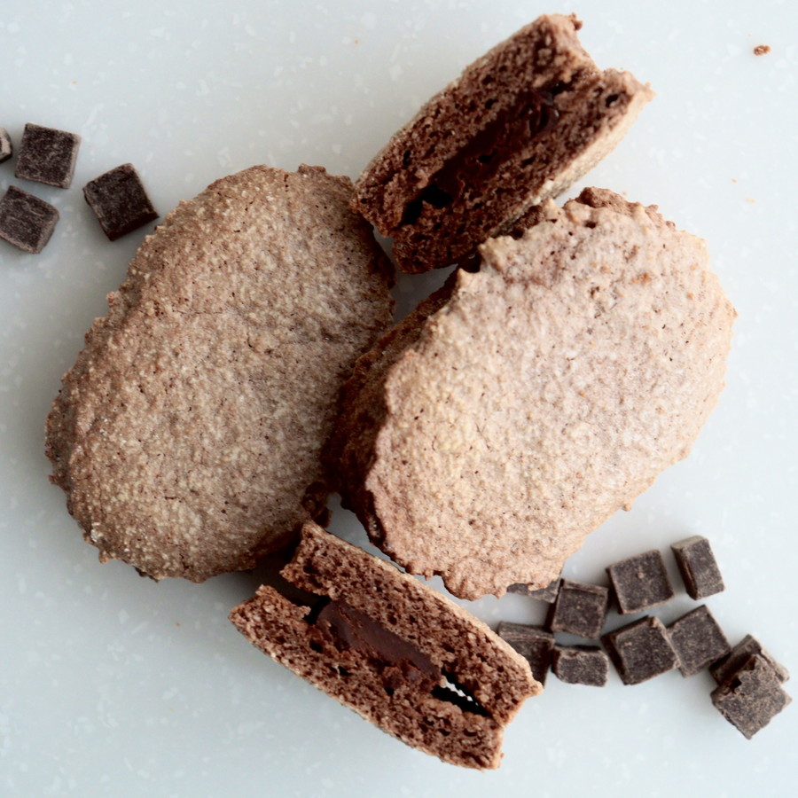 サクッと軽いダックワーズ生地に、なめらかなガナッシュをサンドした「ショコラダックワーズ」。