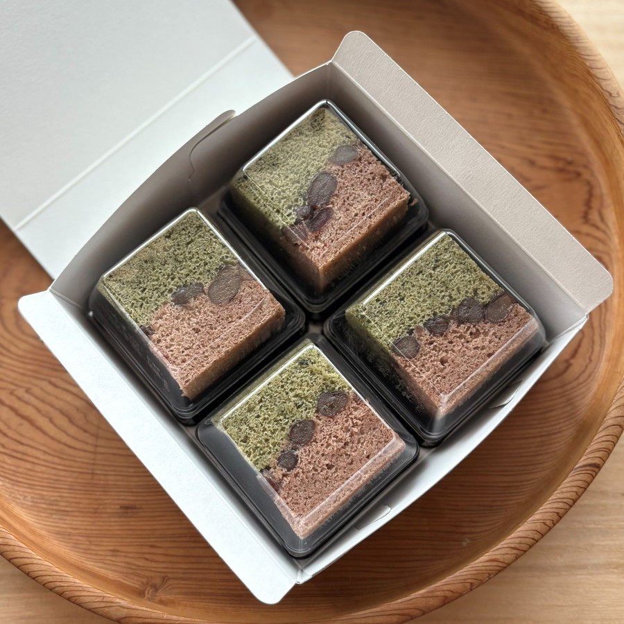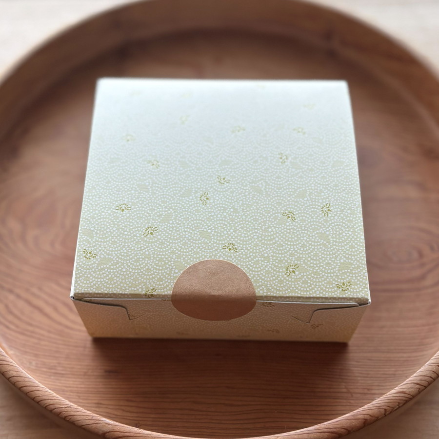 カットした浮島をルミアカップに入れ、和菓子箱に入れる。