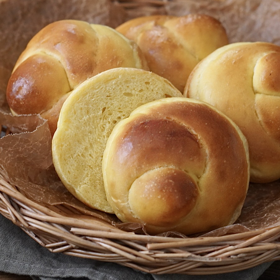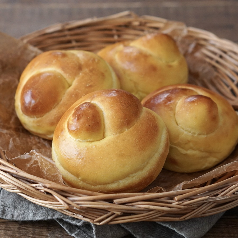 食べやすいサイズに仕上げていますが、高さを出して2つにスライスしたり、ボリュームが欲しい場合は3分割で作るのがおすすめ。かぼちゃペーストを加えず、いつもの【基本のシンプルパン生地】で作ってもOK!