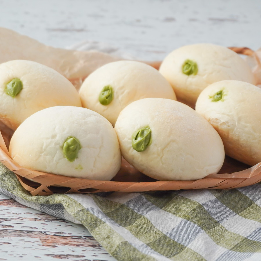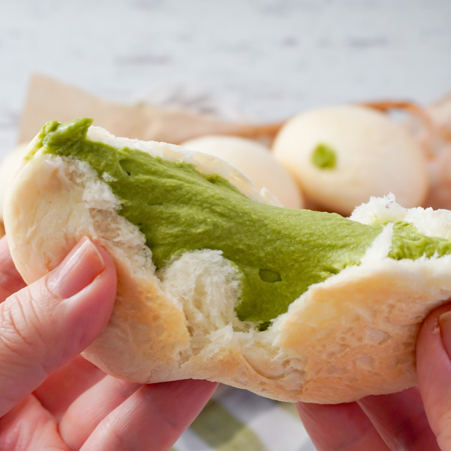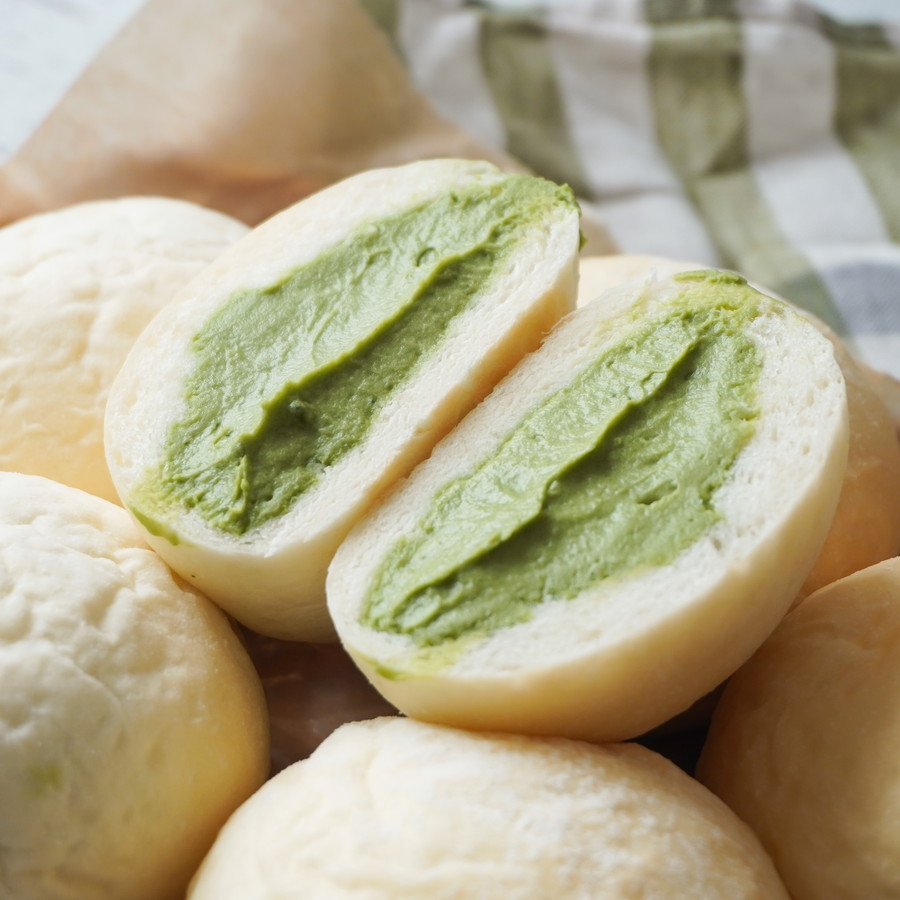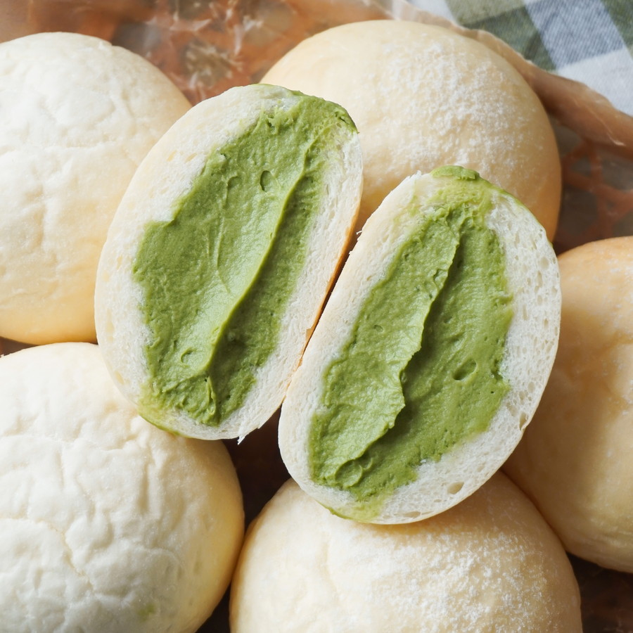 香りも色味も豊かな抹茶尽くしのクリームあんぱんに仕上げました。