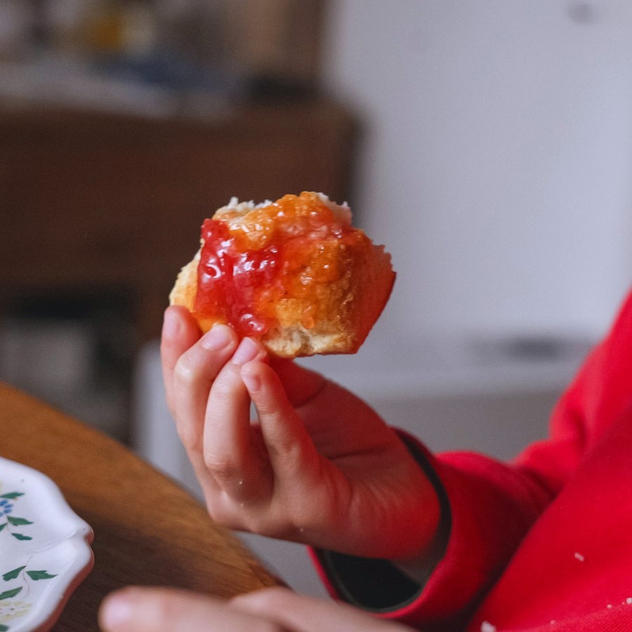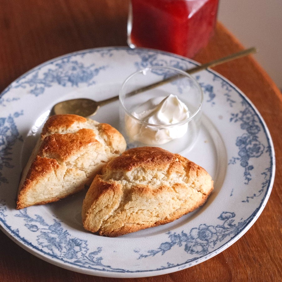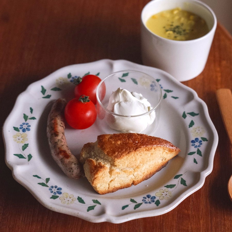 米粉のおやつでよくあるパサつきがなく、外側はさっくりしているのに、中はほろっとしっとりした食感に仕上がります。特に焼き上がりの香りがとても良くて、バターとミルク、ほんのり発酵っぽい香りが合わさって、お菓子屋さんのような香りです。スコーンを焼いている間にミルクティーやカフェラテ、スープなどの飲み物を用意して、少し優雅な気分で朝食を楽しんでみてください。