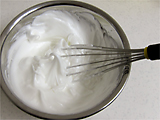 卵白にグラニュー糖を数回に分けながら加え、しっかりしたメレンゲを作る。