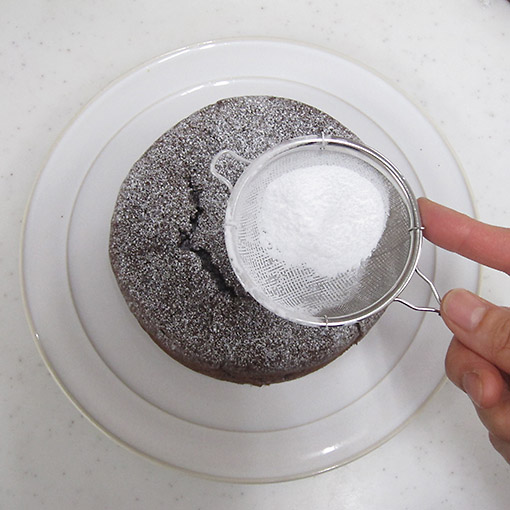 生地を型へ流し入れ180℃のオーブンで30分焼成する。