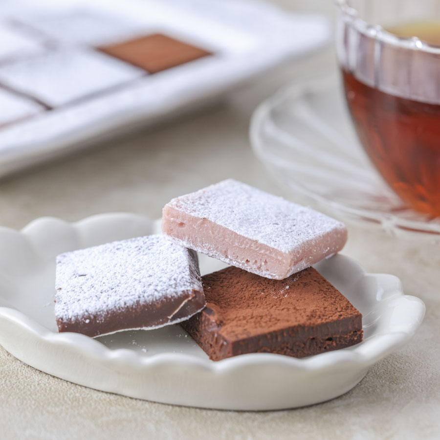 ヴァローナのチョコレートで作るちょっぴりお酒をきかせて仕上げる生チョコです。