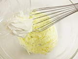 ボウルにクリームチーズを入れてよく練り、サワークリームを混ぜる。