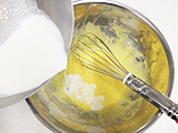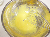 ボウルに卵黄ほぐし、グラニュー糖を加え、白っぽくなるまですり混ぜる。