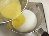 牛乳が沸々と沸いてきたら(5)に1/3程度加えてよく混ぜる。