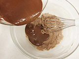 (3)の溶かしたチョコレートに(8)を3回程度分けて加え混ぜる。