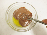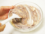 (9)を(1)に少しずつ加えて混ぜ、なめらかな状態にする。