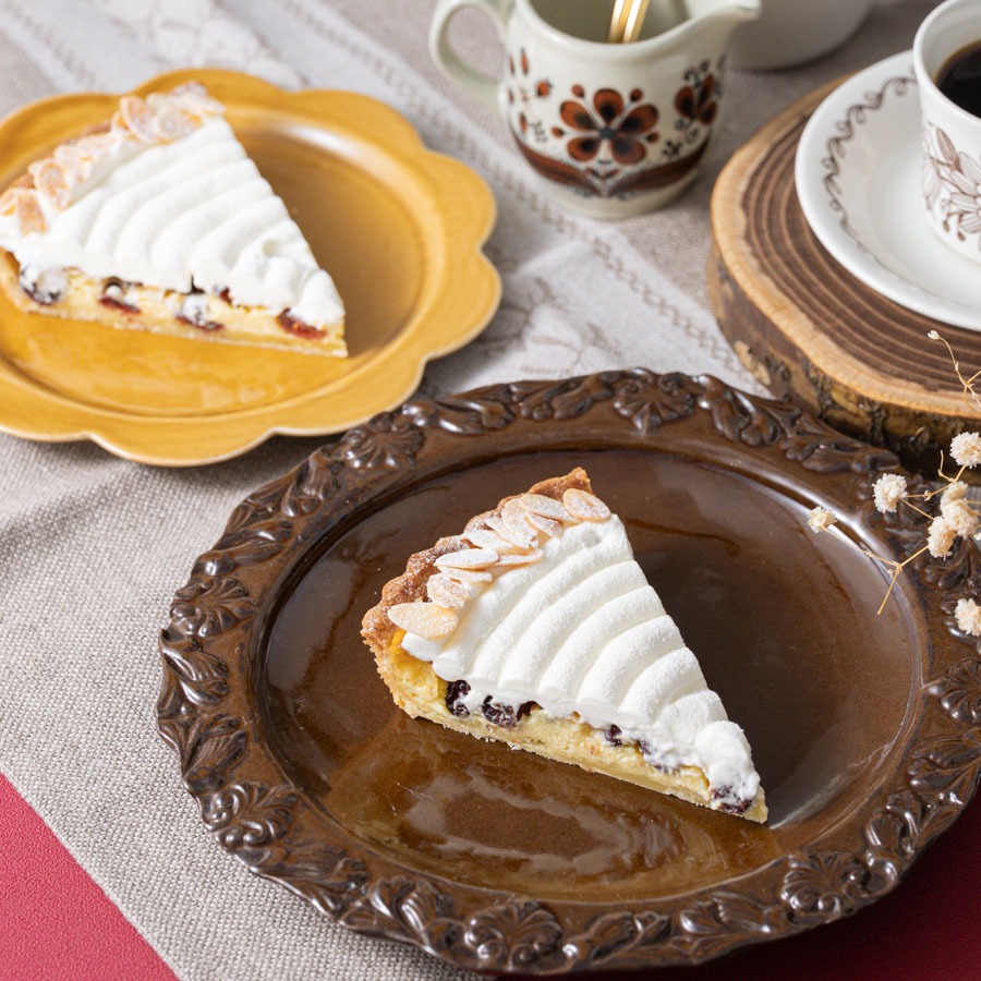 甘酸っぱいクランベリーをたっぷりと入れたタルトです!アパレイユにサワークリームを使うことでクランベリーの酸味をひきたたせました。