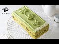 スポンジを半分に切り、表面に抹茶シロップを刷毛で染み込ませます。