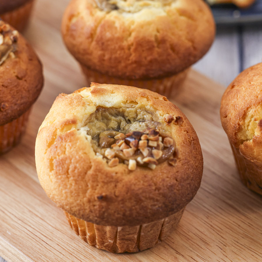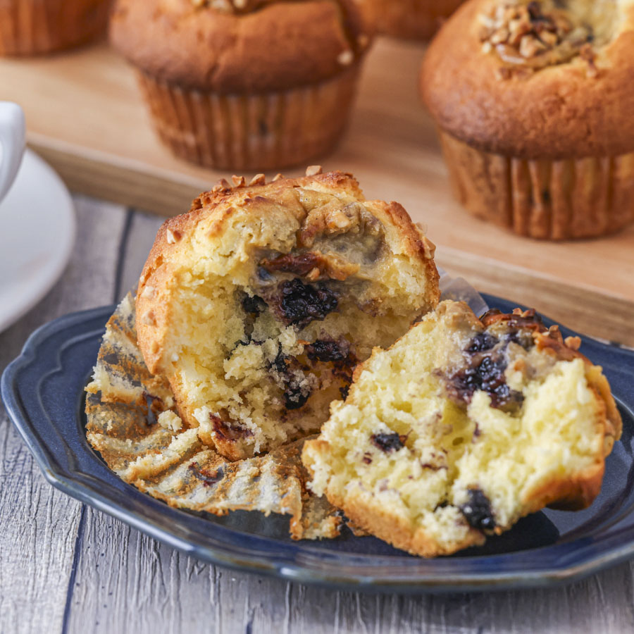 ふんわりマフィンにブルーベリーとカスタードを入れました。遅い朝ごはんや午後のティーブレイクにもぴったり!
