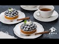 空焼きタルトの内側全面にブルーベリーナパージュを刷毛で塗る。(目安:1個約20gずつ)