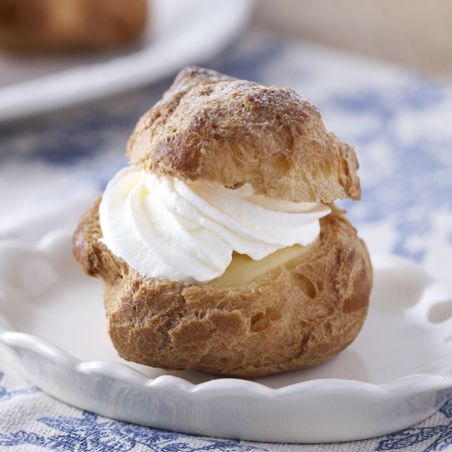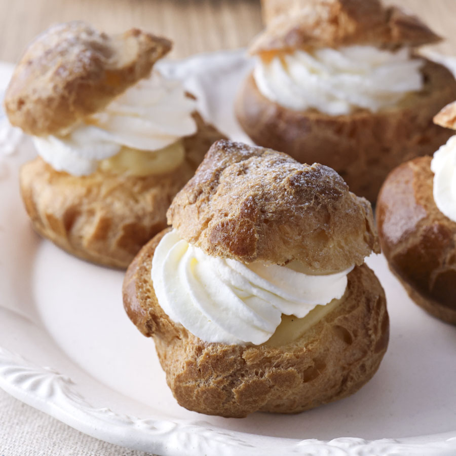 シュークリーム(chou à la crème)とは 中に空洞が開くように特殊な製法で焼きあげた生地にたっぷりのクリームを絞って作るフランス菓子です。