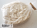 ビニール袋などに入れ、室温(20℃前後)で8〜10時間発酵させる。倍の高さにまで膨らんでくれば発酵終了。冷蔵庫の野菜室を併用しながら、発酵させても良い。