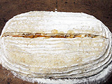 綴じ目を上にした状態で発酵かごの中に入れ、二次発酵させる。
