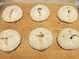 220℃で予熱しておいたオーブンに入れ、200℃で10分、180℃に下げて20分焼く。