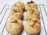 パン作りにおいては大変なじみの深い食材、「胡桃」。生地に食物繊維やビタミンやミネラル、カルシウム、鉄分を多く含んだライ麦を入れて仕込みますので、健康的!