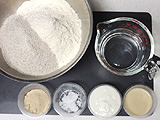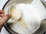 ボウルに、強力粉、ライ麦を入れ、軽く混ぜ合わせる。
