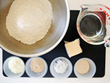 ボールの中に粉、スキムミルクを加え、よく合わせておく。