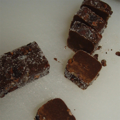 カカオニブをかるく押し込む。その後、冷凍する。
