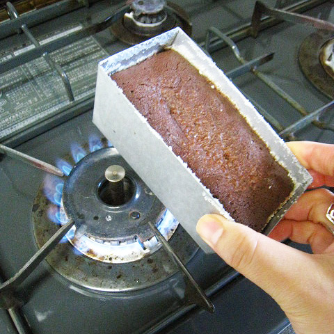 ガス台の火で型を周りからあぶり、型からはずす。