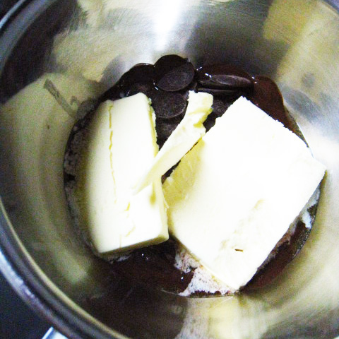 刻んだチョコレートとバターを湯せんで溶かす。