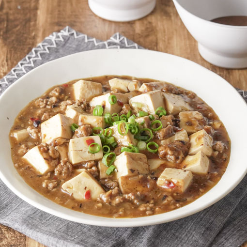 麻婆豆腐に甜麺醤や豆板醤と一緒に入れます。