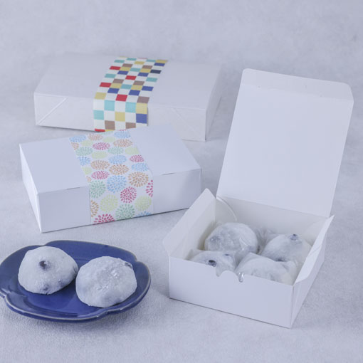 まんじゅうポリシートでくるんだどらやきをこの箱に入れて