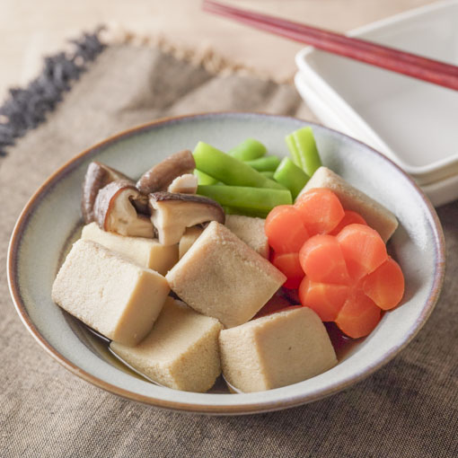 煮汁がふくまれると一口大にした厚揚げ豆腐と同じ大きさになり