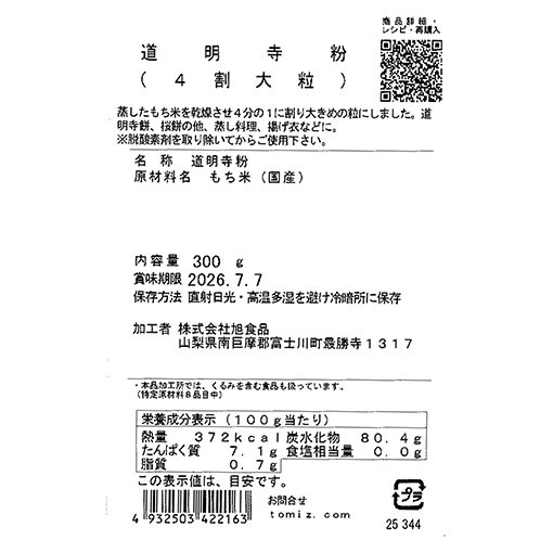 毎年入荷を楽しみにしています。(道明寺餅はこれと決めています)揚げ衣にも適していると書いてあったので残った時に早速試してみました。大粒ならではの見た目と食感があるように感じました。