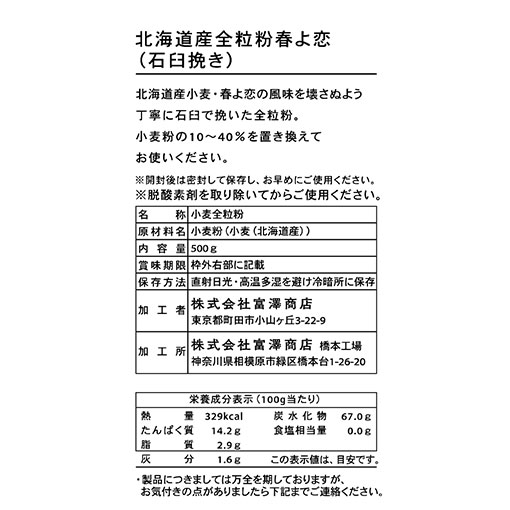 強力粉に春よ恋を使う事が多いので食パンやカンパーニュを焼くときに加えています。普段使いに使える価格で、芳ばしく焼けるので良いと思います。