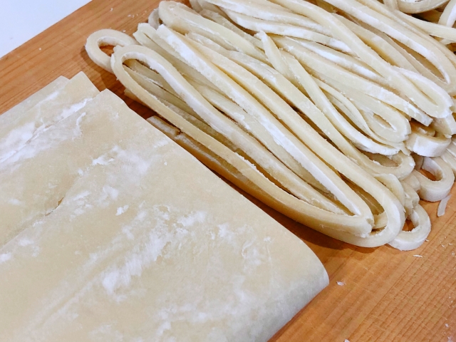 粉からうどん生地をこね・カットし、お持ち帰りいただきます。