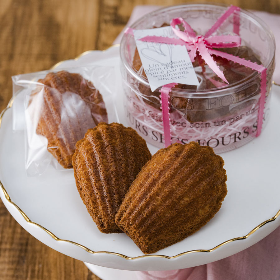 柄入りのクリアケースを使ったお店のようなマドレーヌのラッピング。