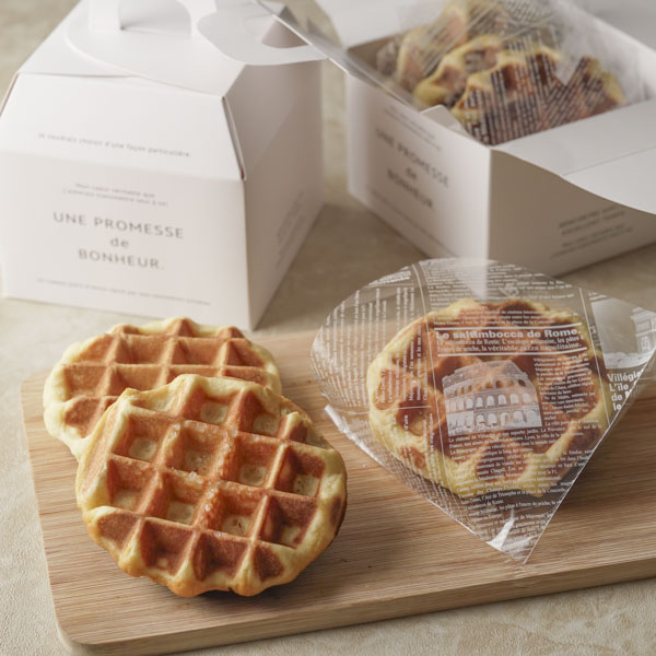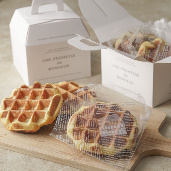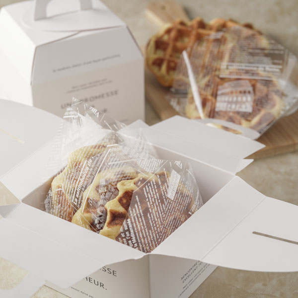 ワッフルをバーガー袋に入れる。同じものを3個作る。