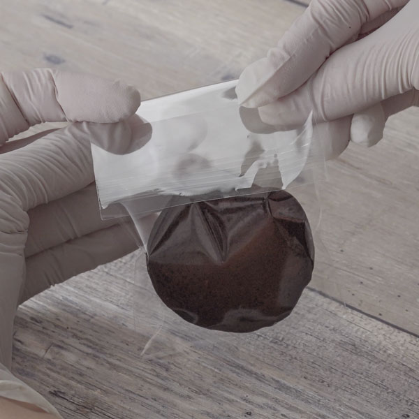 袋のシールの剥離部分を剥がして袋の開け口を留める。
