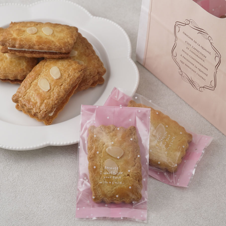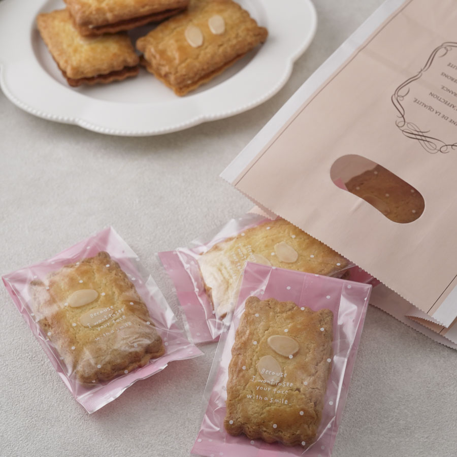 個包装にしたレーズンサンドを柄入りのペーパーバッグに詰め合わせたラッピング。