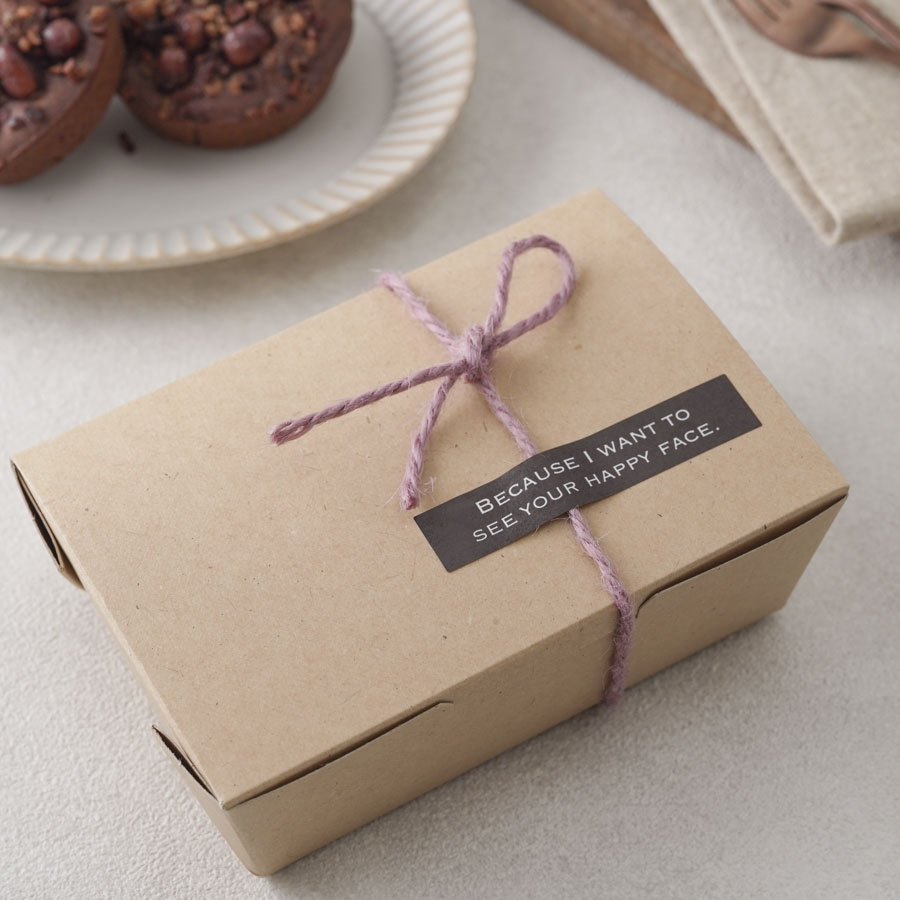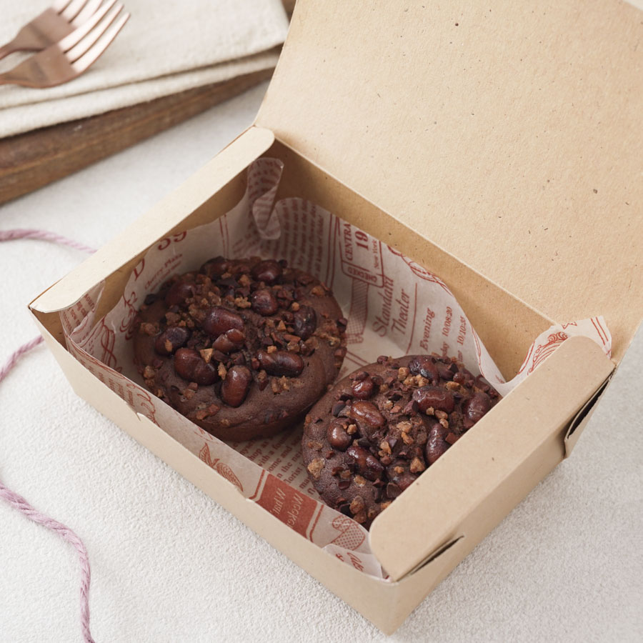 耐水・耐油加工のテイクアウトボックスとワックスペーパーを使ったブラウニーのラッピング。