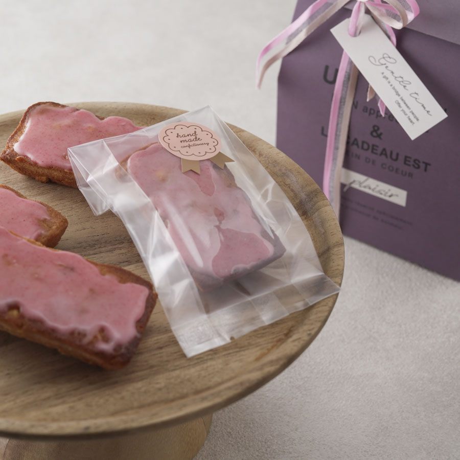 ガス袋に脱酸素剤とフィナンシェを入れる。